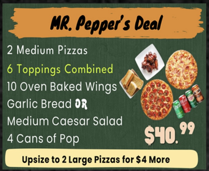 Mr. Pepper's Deal (2 Medium Pizzas)